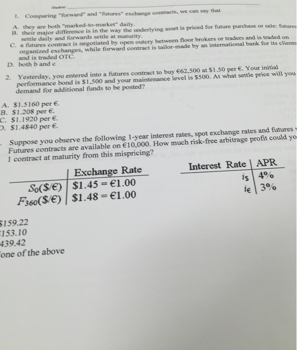 8 Comparing forward and futures exchange contracts we can say that A delivery of the underlying asset is seldom made in futures and forward contracts. 1 Comparing forward and futures exchange contracts we can say that. Futures on the other hand are settled daily until the contract comes to an end.